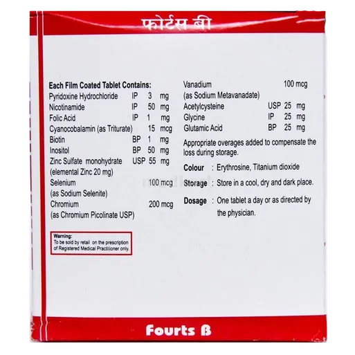 ફોર્ટ્સ બી ટેબ્લેટની ભલામણ કરેલ માત્રા વ્યક્તિની ઉંમર, આરોગ્ય સ્થિતિ અને બી વિટામિનની ઉણપની તીવ્રતાના આધારે બદલાય છે. ડૉક્ટરની સૂચનાઓનું પાલન કરો અથવા લેબલ પર આપેલી સૂચનાઓનું પાલન કરો.
