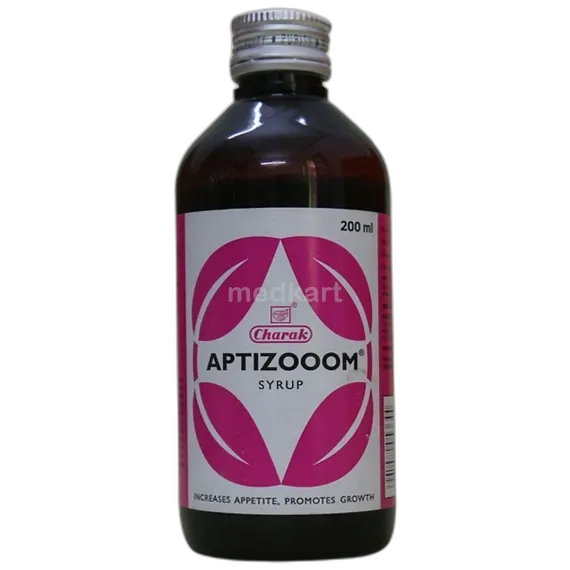 एप्टिज़ूम सिरप 200 मिलीलीटर भूख न लगने की समस्या को हल करने में मदद करता है क्योंकि इसमें भूख बढ़ाने वाले तत्व होते हैं।