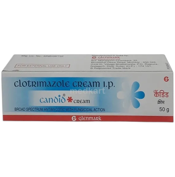 कैंडिड क्रीम 50 जीएम ट्राइकोफाइटन प्रजातियों के खिलाफ प्रभावी है जो दाद संक्रमण, एथलीट फुट और जॉक खुजली (जांघ या नितंब में त्वचा का फंगल संक्रमण) का कारण बनती हैं। यह कैंडिडा नामक खमीर के खिलाफ भी प्रभावी है जो आमतौर पर योनि थ्रश (कैंडिडा एल्बिकन्स नामक खमीर की अत्यधिक वृद्धि के कारण होने वाला संक्रमण) का कारण बनता है।