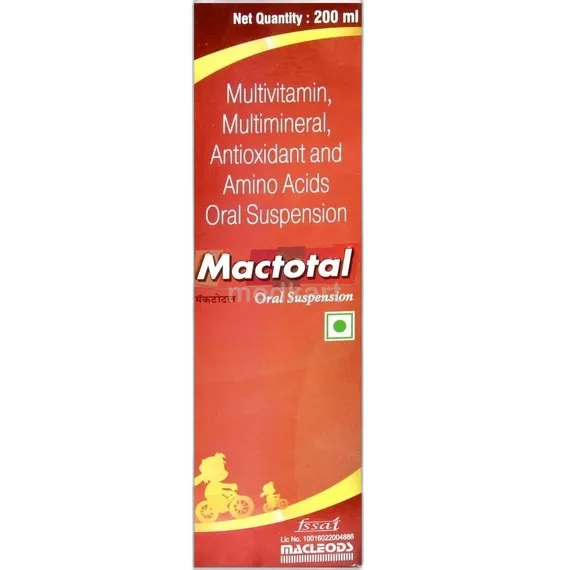 मैक्टोटल सिरप 200 मिलीलीटर एक मल्टीविटामिन और मल्टीमिनरल सप्लीमेंट है। इसका उपयोग आमतौर पर पोषण संबंधी कमियों को दूर करने, समग्र स्वास्थ्य को बेहतर बनाने और कुछ स्वास्थ्य स्थितियों में सहायक चिकित्सा के रूप में किया जाता है।