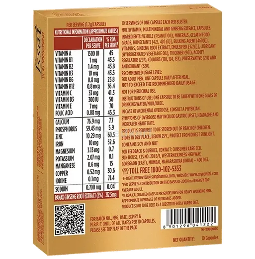 पेट की ख़राबी से बचने के लिए Revital H कैप्सूल को भोजन के साथ या बाद में लेने की सलाह दी जाती है।