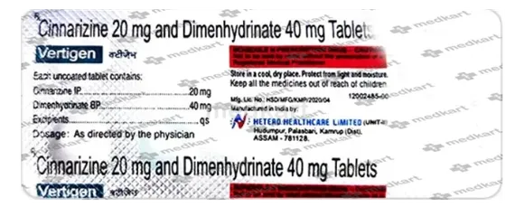 वर्टिजेन टैबलेट 10 एस में मुख्य सामग्री सिन्नारिज़िन है।