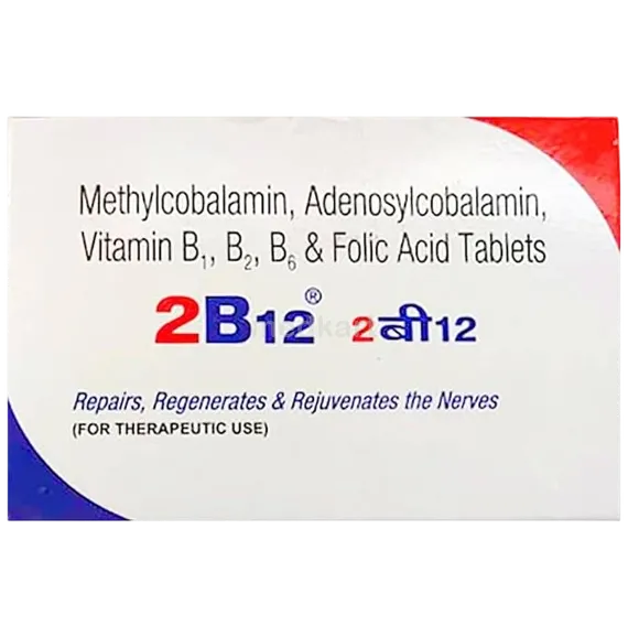 2B12 tablet is used in the management of vitamin B12 deficiency states, including megaloblastic anemia due to B12 deficiency and certain types of peripheral neuropathy. It may be prescribed in patients with nutritional deficiencies, malabsorption, long‑term use of specific medicines that reduce B12 levels, or in some neuropathic pain conditions such as diabetic neuropathy, as part of a comprehensive treatment plan decided by a physician.