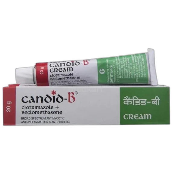 Like all medicines, CANDID B CREAM 20 GM can cause side effects, although not everybody gets them. **Common Side Effects:** * Itching * Irritation * Burning sensation * Redness * Dryness **Uncommon Side Effects:** * Blistering * Peeling of skin * Swelling * Hives * Rash * Allergic reactions (difficulty breathing, swelling of the face, lips, tongue, or throat) * Thinning of the skin * Changes in skin color * Increased hair growth * Secondary infection If you experience any of these side effects or any other unusual symptoms, stop using CANDID B CREAM 20 GM and consult your doctor immediately.
