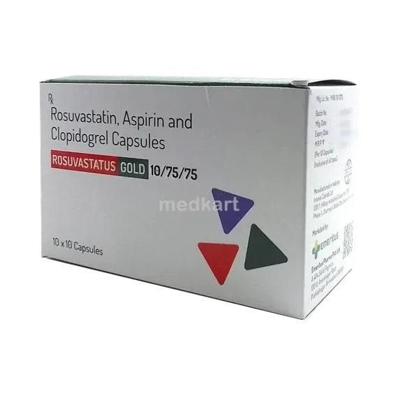 CREVAST GOLD 10MG CAPSULE 15'S is a medication that contains Aspirin, Clopidogrel, and Rosuvastatin as its components.