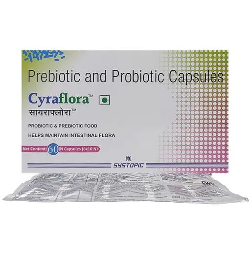 Cyraflora Capsule 10'S is a probiotic supplement that helps improve digestive health.