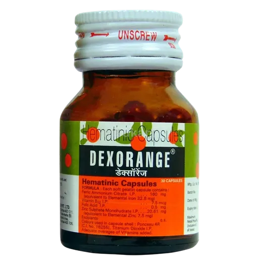 Dexorange Capsule 30's is commonly used to treat iron deficiency anemia, folic acid deficiency, and vitamin B12 deficiency. It works by increasing the production of red blood cells.
