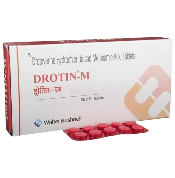 Drotin M Tablet contains Drotaverine and Mefenamic Acid as main ingredients.