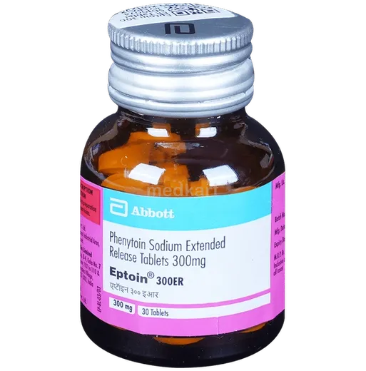 Common side effects of Eptoin ER 300mg Tablet may include: Nystagmus (involuntary eye movement), Ataxia (impaired balance or coordination), Slurred speech, Decreased coordination, Confusion, Dizziness, Headache, Nausea, Vomiting, Constipation. Less common but potentially serious side effects include: Skin rash, Fever, Swollen glands, Liver problems (such as jaundice - yellowing of the skin or eyes), Blood disorders (such as decreased white blood cells or platelets), Peripheral neuropathy (nerve damage causing numbness, tingling, or pain in the hands or feet), Stevens-Johnson syndrome (a severe skin reaction), Toxic epidermal necrolysis (another severe skin reaction), Drug Reaction with Eosinophilia and Systemic Symptoms (DRESS syndrome), Suicidal thoughts or behavior, Increased seizure frequency.