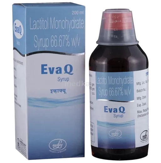 EVA Q SYRUP 200 ML is used to treat constipation which is presented as infrequent bowel movements, hard and dry stools. It is also used in patients with hepatic encephalopathy (serious liver problem causing confusion, tremors and decreased level of consciousness).