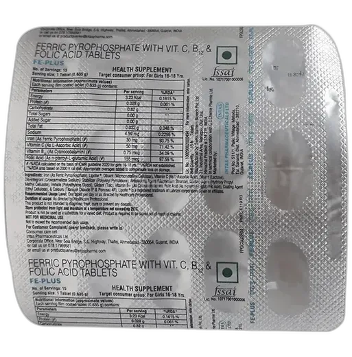 Before taking FE PLUS TABLET 15'S, it is important to communicate any existing medical conditions, current medications, and pregnancy or breastfeeding status to your doctor. Avoid antacids, dairy products, tea, and coffee within 2 hours of taking the tablet. Store it at room temperature, away from direct sunlight and heat, keeping it out of children's reach. Don't exceed the recommended dosage; consult your doctor if any side effects occur. Be aware of potential interactions with calcium supplements and monitor iron levels through regular blood tests. Adhering to these precautions can maximize the benefits and minimize the risks associated with this medication.