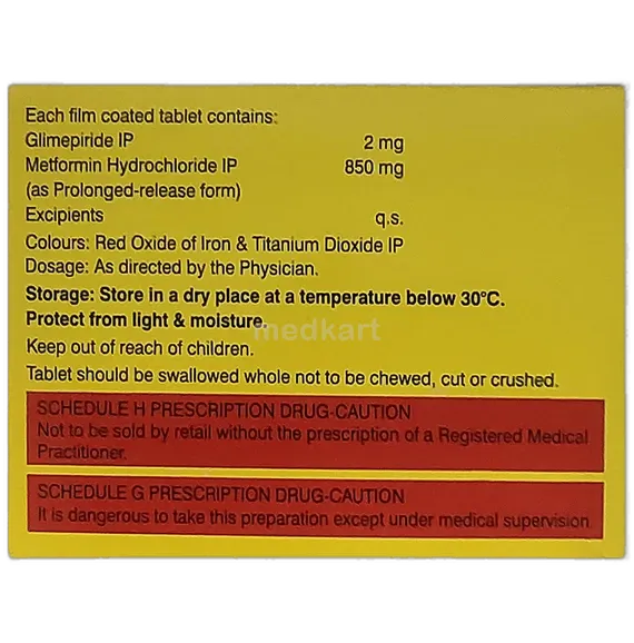 Glycomet GP 2/850mg Tablet 10's works in two ways: by increasing the release of insulin from the pancreas and by making the body more sensitive to insulin.