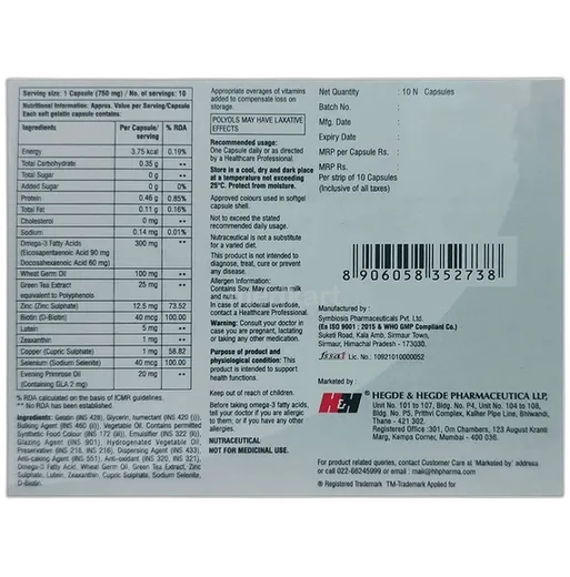 HHomega Plus Capsule is a nutritional supplement containing Omega-3 fatty acids, EPA, and DHA. It is used to support heart health, brain health, and overall well-being.