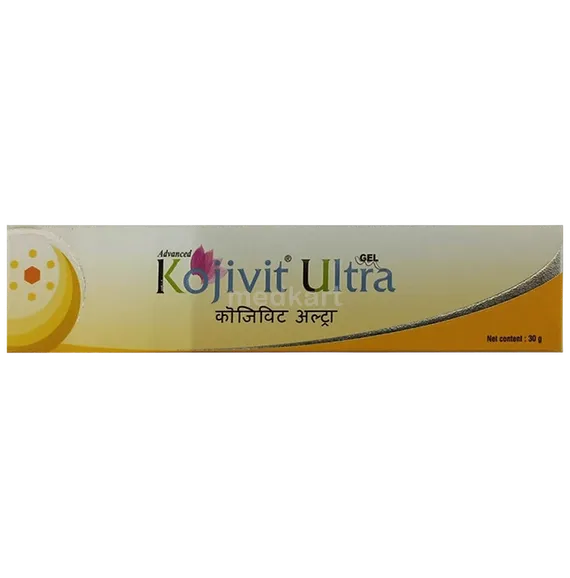 Common side effects of Kojivit Ultra Gel 30 GM may include skin irritation, redness, itching, or dryness. Consult a doctor if these side effects persist or worsen.