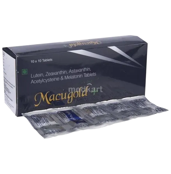 Macugold Plus Tablet 10'S is a dietary supplement primarily used for age-related macular degeneration (AMD) and other eye conditions. It contains essential vitamins, minerals, and antioxidants that support eye health.