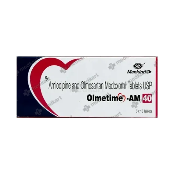 Olmax AM 40mg Tablet 15's is a combination of two medicines: Olmesartan medoxomil and Amlodipine. It is used to treat high blood pressure (hypertension).