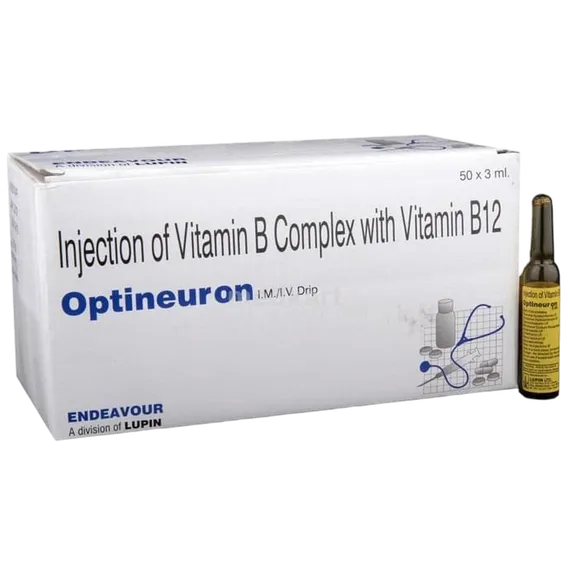 Optineuron Injection 3ml is a combination of Vitamin B1, B6, and B12. It is used to treat vitamin deficiencies and manage neurological problems like peripheral neuropathy.