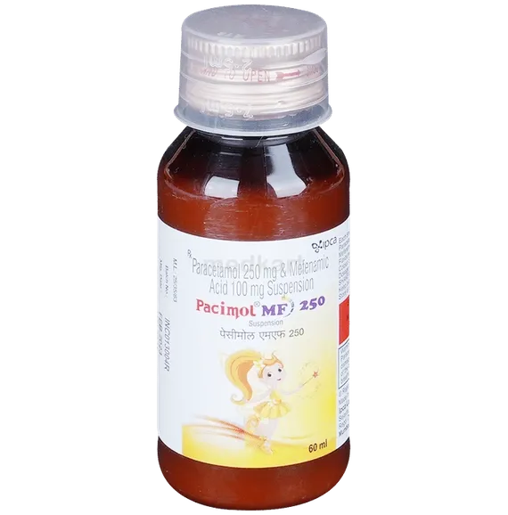 PACIMOL MF 250 SUSPENSION 60 ML contains two active ingredients: Paracetamol (Acetaminophen) and Mefenamic Acid.