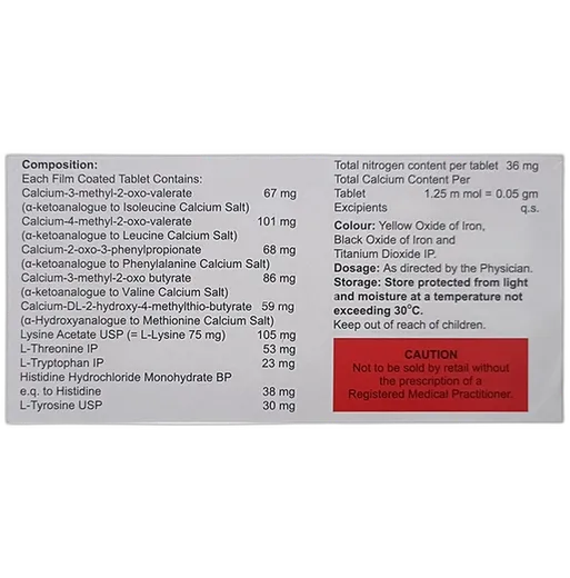 The usual advice for an adult is to take the tablets during meals as it helps in proper absorption or usage of the amino acids. The tablets must not be chewed. RENOLOG TABLET 15'S should be given along with dietary protein restriction in cases of kidney failure. The duration of treatment depends on the severity of the kidney problem. Follow your doctor’s advice and if you notice any uneasiness/discomfort or reaction, immediately contact your doctor.