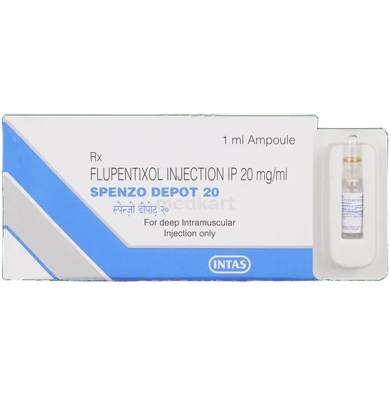 SPENZO INJECTION 1 ML belongs to a class of medication called as typical antipsychotic. It acts by increasing the amounts of chemical (serotonin), in the brain. SPENZO INJECTION 1 ML decanoate is a long-acting preparation of SPENZO INJECTION 1 ML for injection into the muscles, which may be given at a frequency ranging from once in a week to once in 4 weeks