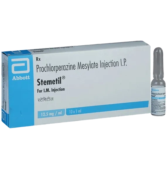 STEMETIL INJECTION is used to treat mental disorders like schizophrenia. It is also used to treat and prevent nausea, and vomiting.It may be used to treat anxiety (short-term) in certain cases where other anti-anxiety drugs have been ineffective. It is also used to treat nausea, vomiting, dizziness or spinning sensations (vertigo) due to Meniere's disease.It belongs to a class of medication call phenothiazines. It acts on the central nervous system by blocking certain receptors thus producing an anti-psychotic and anti-vomiting effect