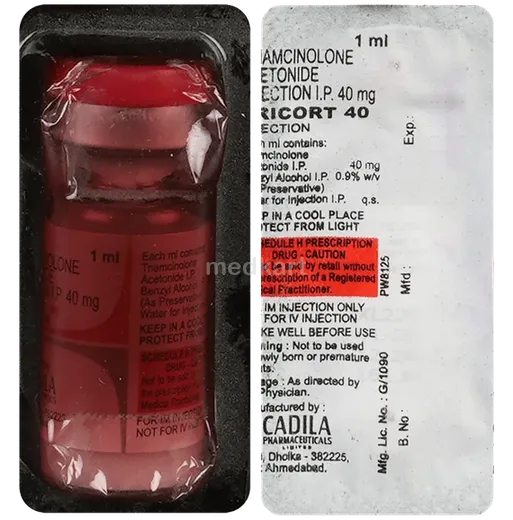 TRICORT 40MG INJECTION 1 ML should be administered under the supervision of a healthcare professional or a doctor only and should not be self-administered. The dose will depend on the condition you are being treated for and will be decided by your doctor. Follow your doctor’s instructions carefully to get the maximum benefit from TRICORT 40MG INJECTION 1 ML.