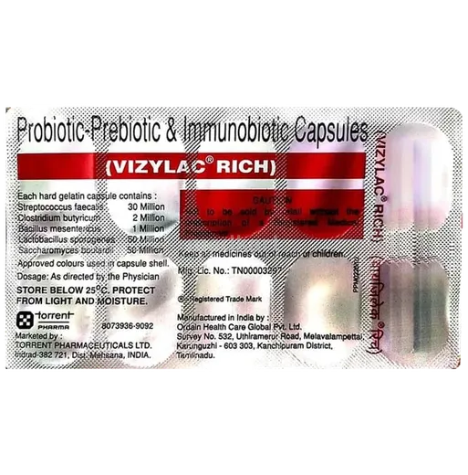 Vizylac Rich Capsule 10's is used to improve digestive health, prevent and treat diarrhea, and boost the immune system.