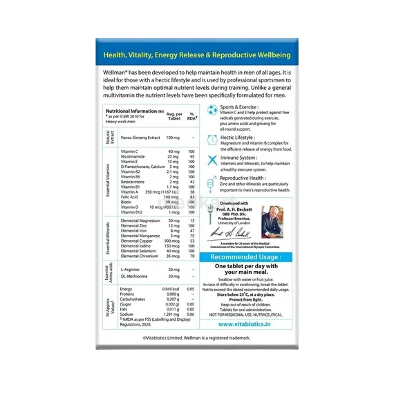Wellman Tablet is a multivitamin and mineral supplement designed to support men's health. It is used to help boost energy levels, support the immune system, and maintain overall health.