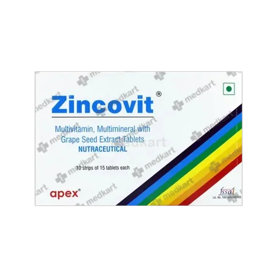Zincovit Tablet is a multivitamin, multimineral, and antioxidant supplement used to support overall health, boost immunity, improve energy levels, and fill nutritional gaps. It is often recommended for general weakness, convalescence, or to support daily dietary needs.